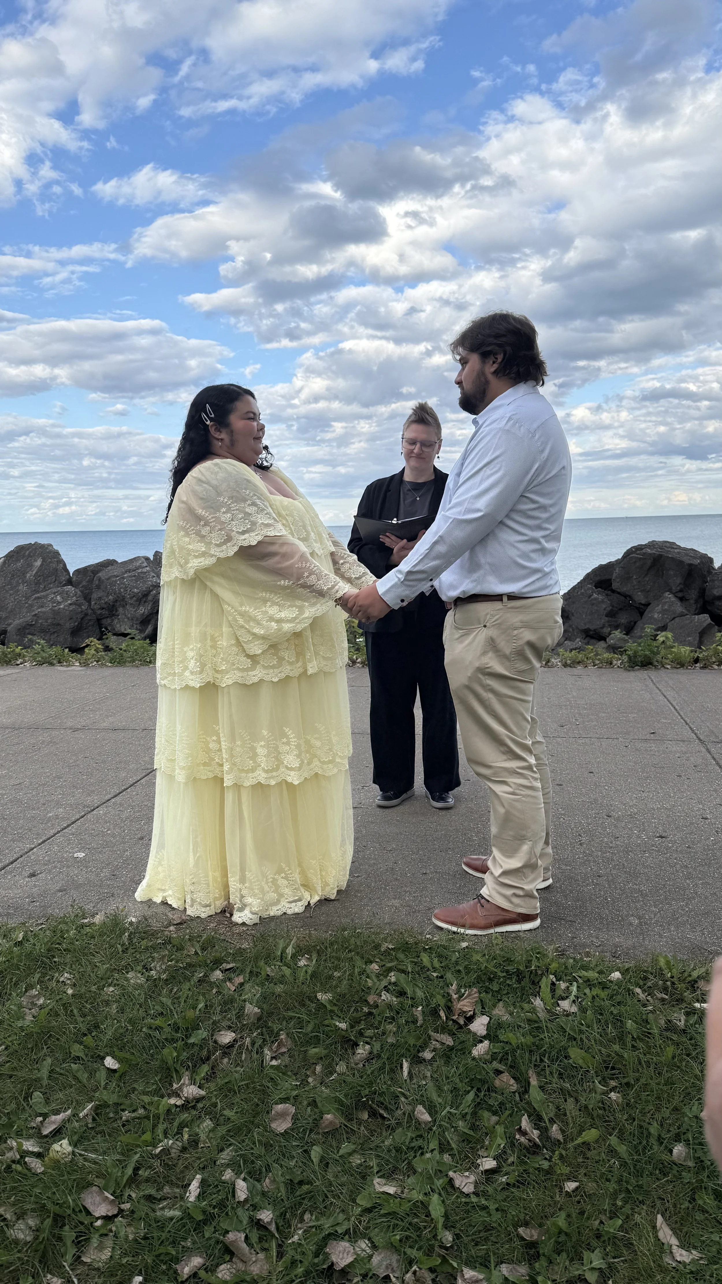 “Erica officiated my elopement and she made the process so easy! To make a long story short, the elopement plans kept changing until the day before my husband and I were set to get married, and Erica was so kind and helpful throughout the whole process. I was driving myself and everyone else nuts, and through all the changes she was the calm in the storm and helped me stay sane. She was absolutely wonderful to work with because she is attentive, patient, professional, and so sweet! Erica will help you customize your ceremony to be what you want, which was really nice because it felt so personal to us, even though we kept it short and sweet. If I had to do this all over again, I would pick Erica every time. Don't hesitate, book her now!”